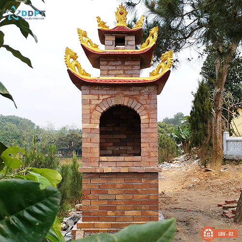 Sản phẩm lò hóa vàng mã LHV - 02 được thiết kế và xây dựng với mục đích sử dụng dùng để hóa sớ, hóa vàng mã kích thước nhỏ. Lò hóa vàng mã thiết kế cao 2,5m thân lò vuông vắn gọn gàng. Phần cửa lò uốn vòm sang trọng. Mái 3 tầng tạo nên vẻ đẹp sang trọng cho công trình.